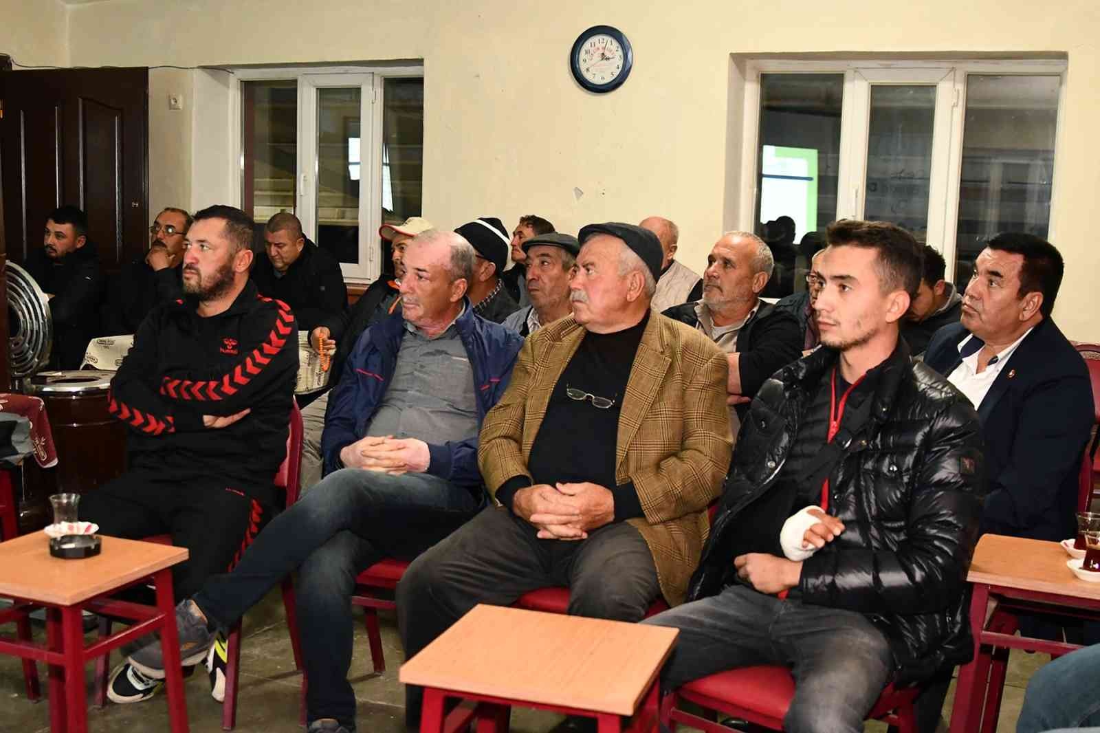 İklim Sözcüklerinden Ziraat Yüksek Mühendisi Zevaiddin Özcan, katılımcılara tarım konusunda yaptığı sunumunda iklim değişikliğinin tarıma olan etkisi meydana gelen sıcak hava dalgaları, orman yangınları, kuraklık, şiddetli ve düzensiz yağışlar, fırtınalar, seller gibi konulara değindi. Özcan, iklim değişikliğinin önüne geçilmesi ve iklim değişikliğine uyum için toprak hazırlığından hasada kadar alınabilecek önlemler konusunda da üreticileri aydınlattı. Ayrıca sera gazı salımının nasıl azaltılacağı, iklimsel gelişmelere ve yeni tarım uygulamalarına nasıl uyum sağlanacağı konusunda da açıklamalar yapıldı. Tasarruflu su kullanımının özellikleri ve uygulanabilirliği başlıklarının da tartışıldığı toplantıda, üreticiler de merak ettikleri konuları uzmanlarına sorma imkanı buldu.