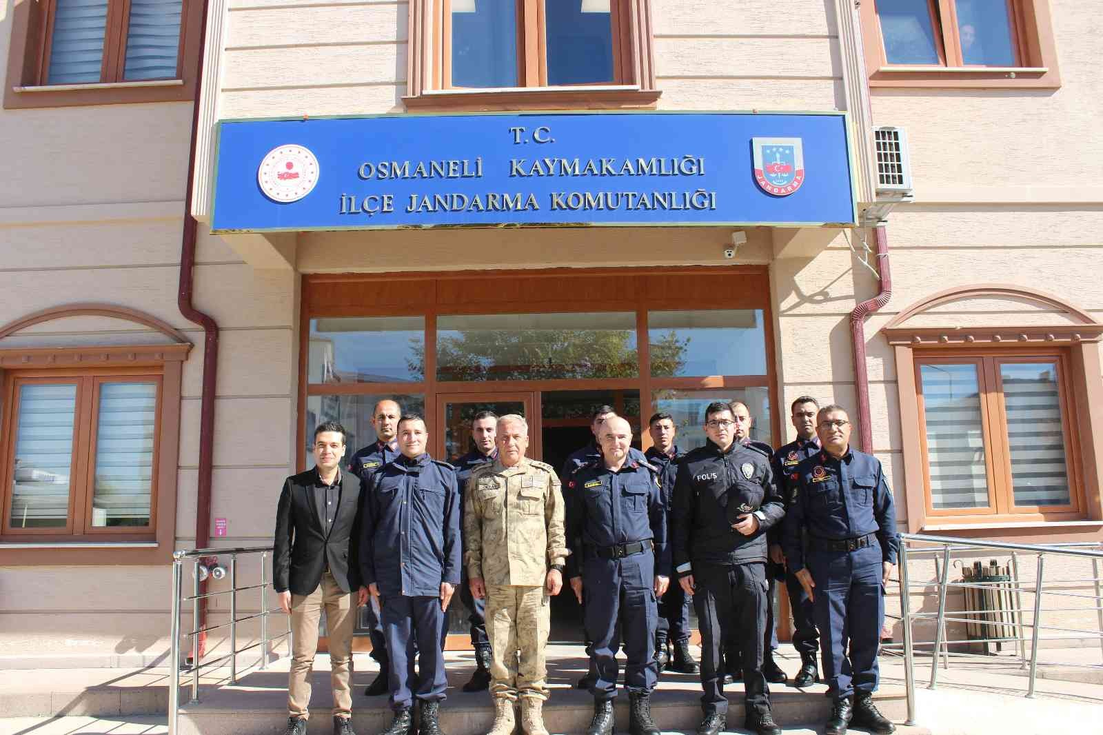 Osmaneli İlçe Jandarma Komutanı Üsteğmen Öcal Ersoy ve personeli tarafından karşılanan Jandarma Denetleme ve Değerlendirme Başkanı Tümgeneral Semih Okyar bir süre personel ile sohbet ettikten sonra İlçe Jandarma komutanlığı makamına geçerek İlçenin genel ve asayiş durumu hakkında bilgi alan Tümgeneral Okyar İlçe Jandarma Komutanı Üsteğmen Ersoya ve personeline teşekkür ederek görevlerinde başarılar diledi.