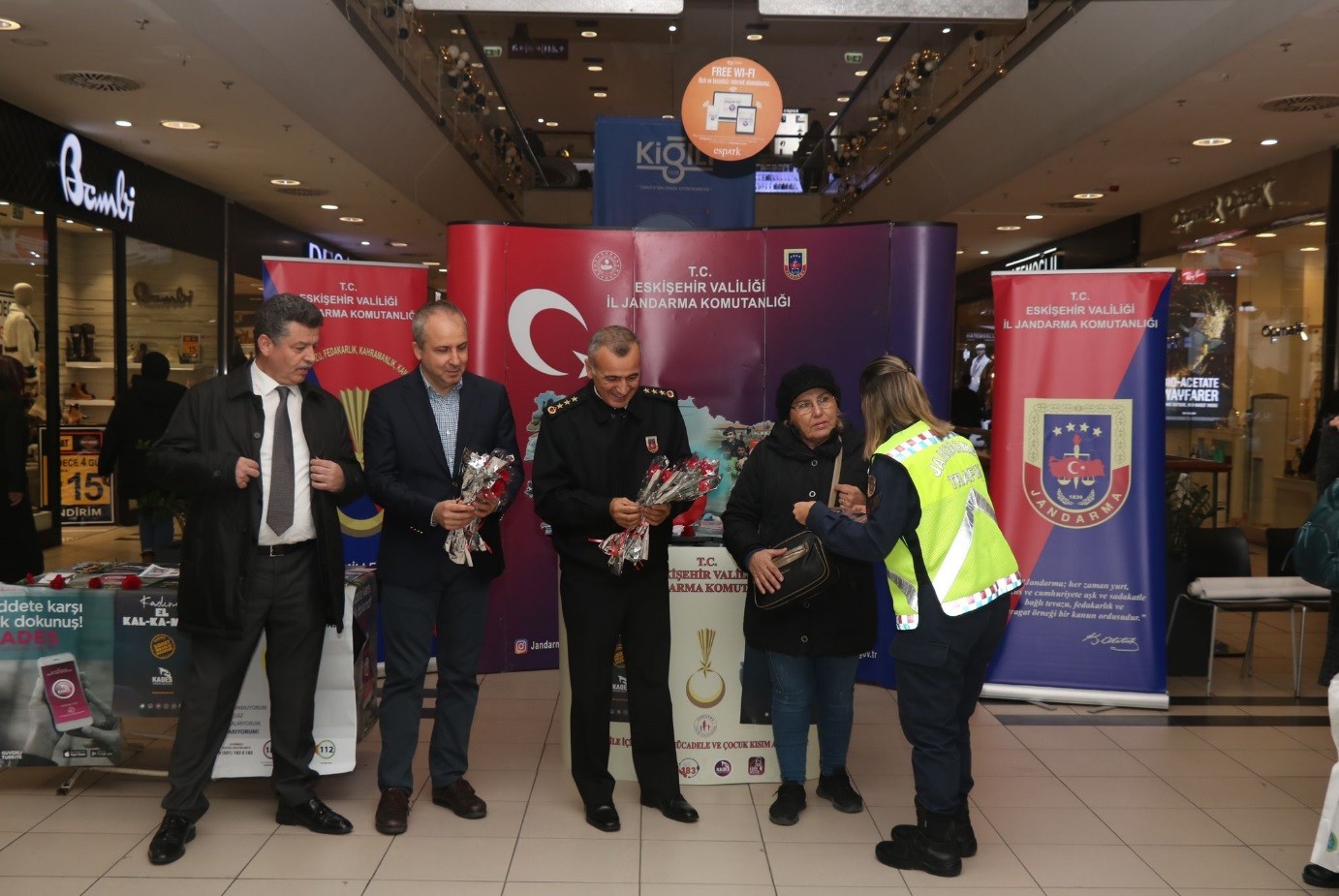 Eskişehir İl Jandarma Komutanlığı Aile İçi Şiddetle Mücadele ve Çocuk Kısım Amirliği koordinesinde 25 Kasım Kadına Karşı Şiddetle Mücadele Günü çerçevesinde Espark AVM’de bilgilendirme faaliyeti gerçekleştirildi.