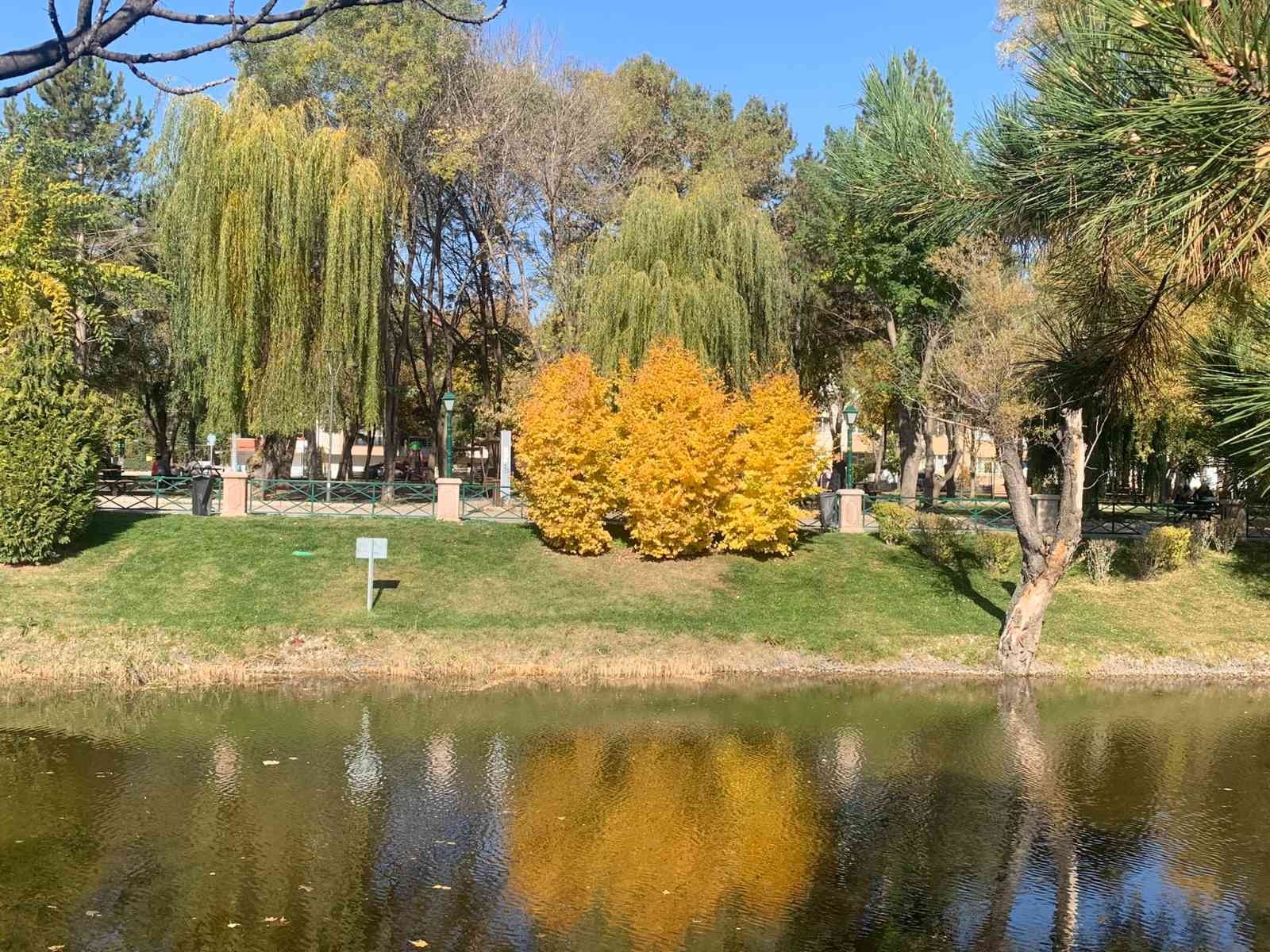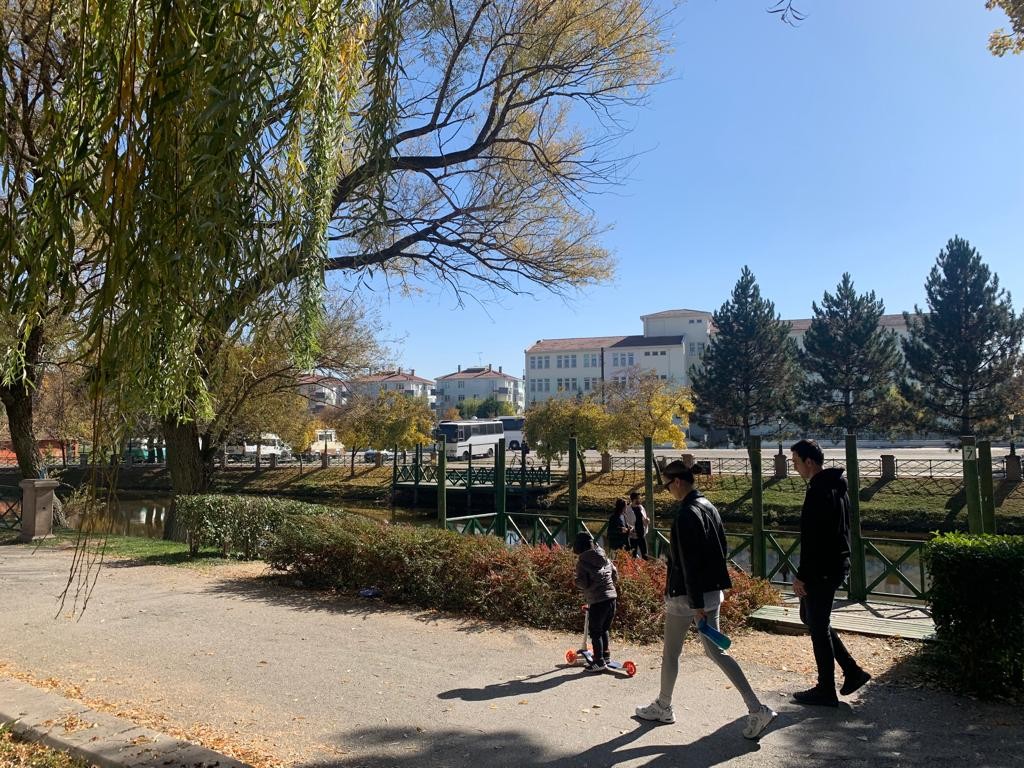 Eskişehir’de sonbaharın gelişiyle sarının tonlarına bürünen ağaçlara ev sahipliği yapan Kanlıkavak Parkı, şehrin gürültüsünden sıkılan vatandaşların nefes alabileceği bir alan oluşturuyor.