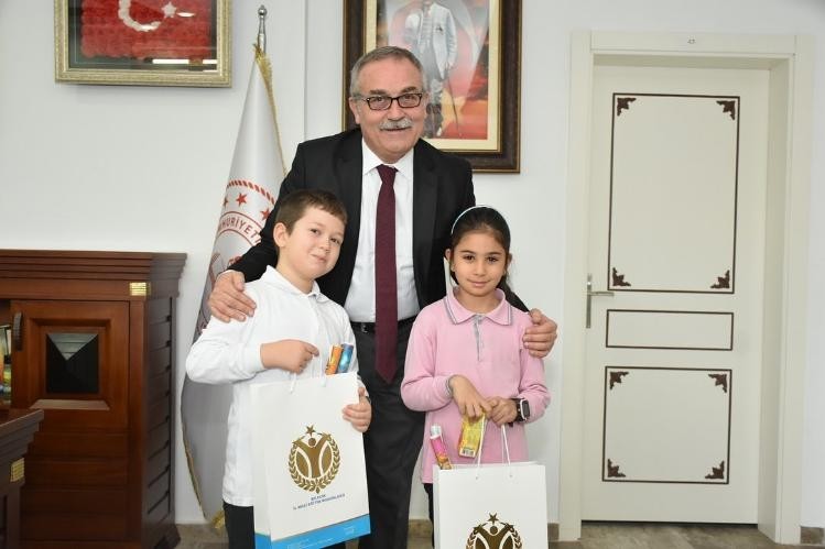 Yerli Malı Haftası sebebi ile 700. Yıl İlkokulu 2’nci sınıf öğrencileri Simay Ercan ve Ali Göktuğ Çetinkaya, Bilecik İl Milli Eğitim Müdürü Sami Akyol’u makamında ziyaret etti. Minik öğrenciler kendilerine kardeş il olarak seçmiş oldukları Gaziantep ve Amasya yöresine ait yiyecekleri Müdür Akyol’a takdim ettiler. Hem yörelerinin yiyeceklerini hem de Bilecik’in tanıtımına katkı sunmak amacıyla hediyeleşerek gönül köprüsü kuran minikler haftanın önemine dikkat çektiler.