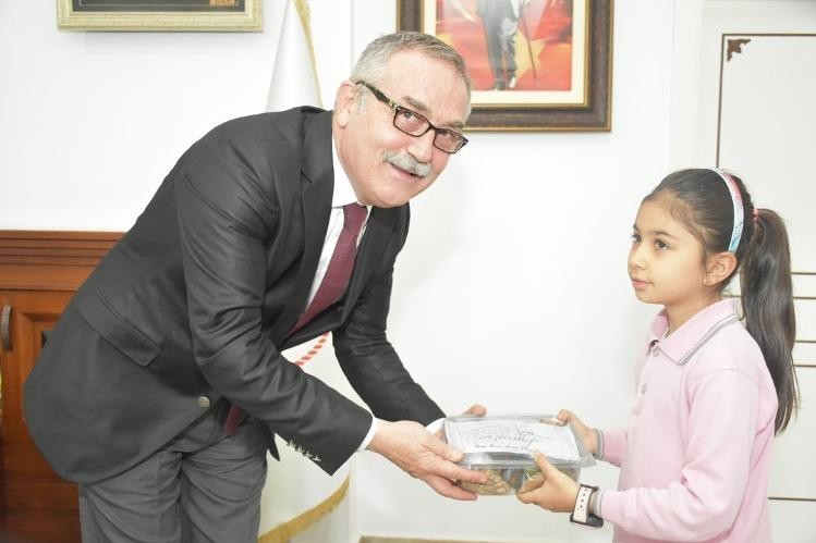 Öğrencilerin yapmış oldukları anlamlı ziyaretten duyduğu memnuniyetini ifade eden Müdür Akyol, miniklere teşekkür ederek hediye verdi.