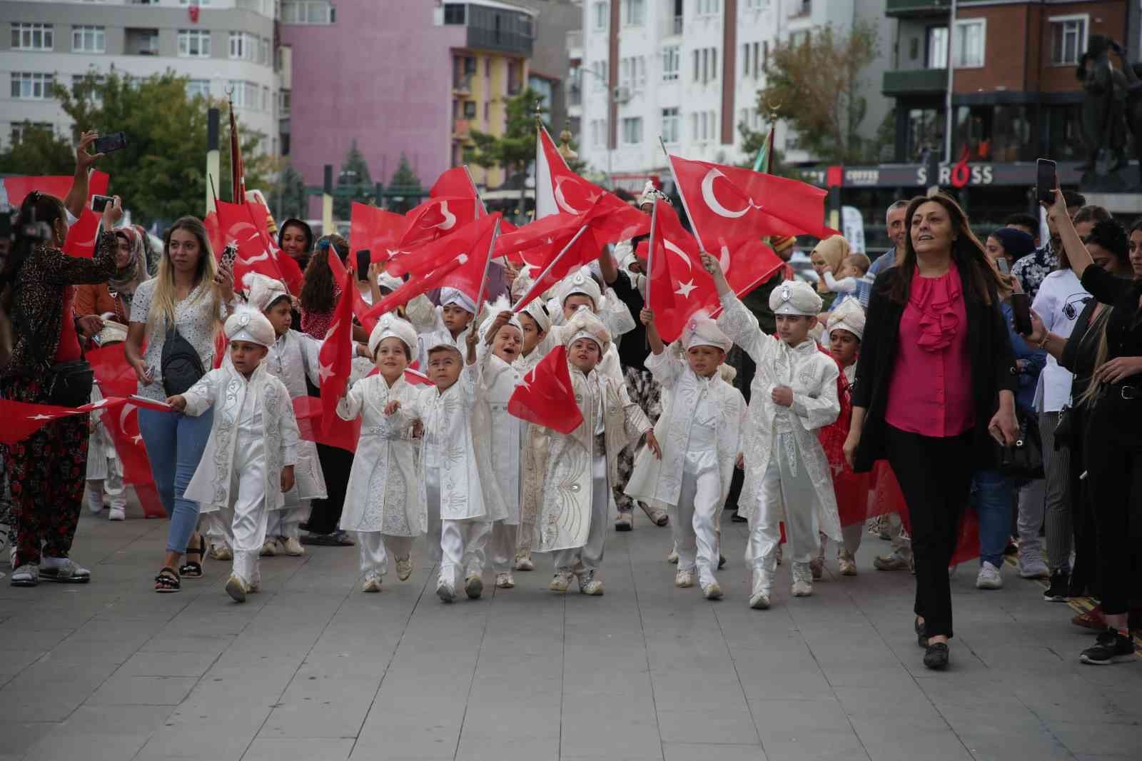 Kütahya Belediyesi’nin toplu sünnet şöleni, Kütahya Belediyesi önünde mehteran takımı gösterimi ile başladı. Belediye önünden Zafer Meydanı’na kadar gerçekleşen kortej yürüyüşünde çocuklar Başkan Işık ile birlikte yürüdü. Zafer Meydanı’nda Kütahya Belediyesi tur otobüsü ile şehir turu yapan sünnet çocukları, Bengisu Sosyal Tesislerine geldi.