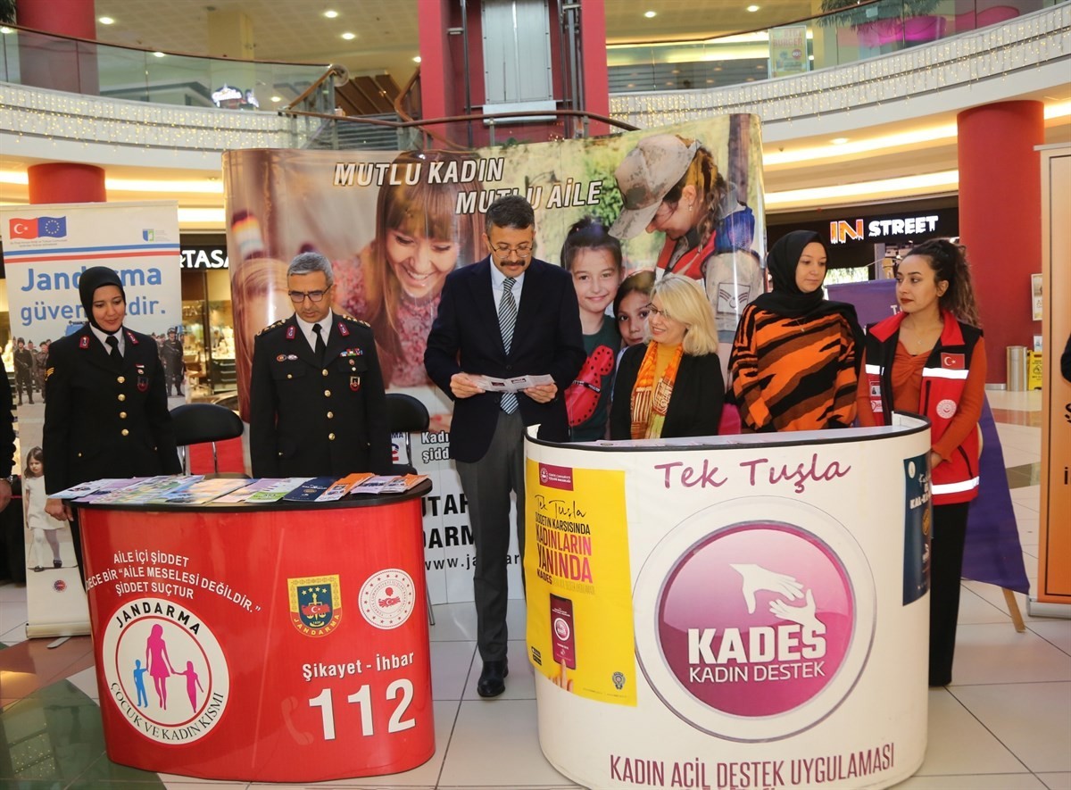 Vali Ali Çelik, Kadına Yönelik Şiddete Karşı Uluslararası Mücadele Günü çerçevesinde, Kütahya İl Jandarma Komutanlığı ile İl Emniyet Müdürlüğünce kurulan Kadın Acil Destek İhbar Sistemi (KADES) tanıtım stantlarını ziyaret etti.