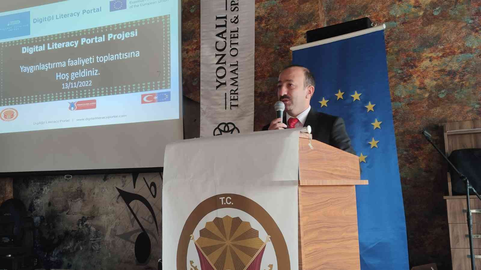 İl Planlama ve Koordinasyon Müdürü İbrahim Bektaş, yaptığı konuşmada, proje amacının sosyal yaşam, iş ve iletişim gibi hayatın her alanında yer alan bireylere, doğru ve güvenilir bilgilere ulaşma, elde ettiği bilgi ve belgeleri çözümleme, sorgulama, değerlendirme ve bireysel sorumluluklarının bir gereği olarak dijital okuryazarlık becerilerinin yöntem ve tekniklerini öğreten bir e-öğrenme semineri olduğunu söyledi.