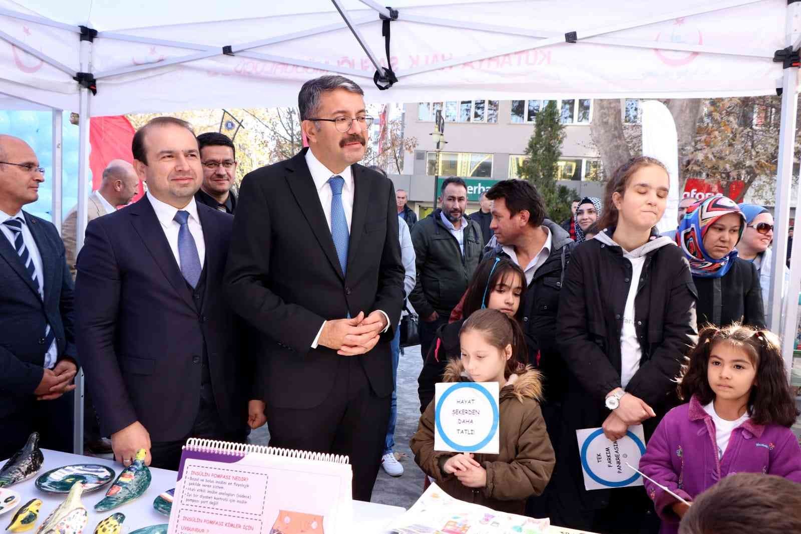 Stantları ziyaret eden Vali Ali Çelik ve İl Sağlık Müdürü Dr. Eser Şenkul, diyabetli çocuklar ile ailelerinin yaşadığı sorunları ve taleplerini dinlediler.