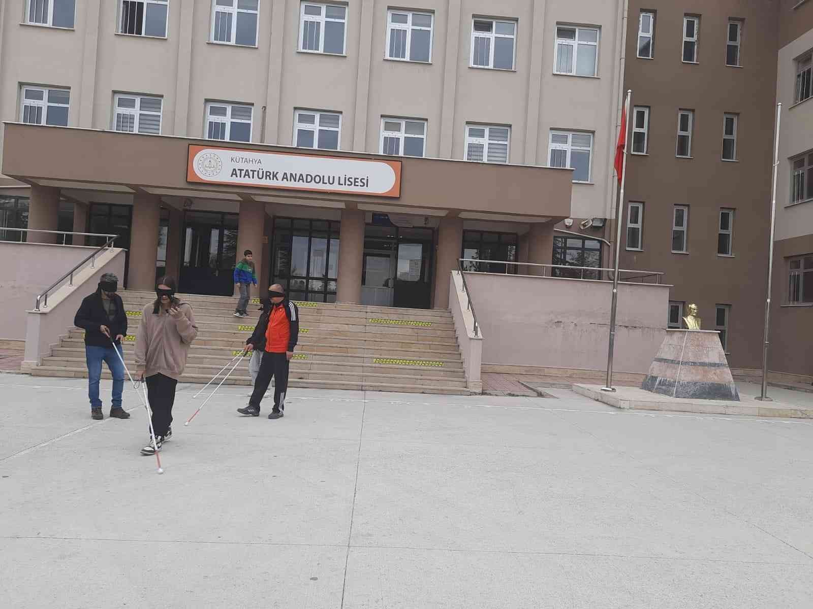 Kütahya Atatürk Anadolu Lisesi Engellilerle Dayanışma Kulübü, 15 Ekim Dünya Beyaz Baston ve Farkındalık Günü dolayısıyla öğrenciler 5 dakikalığına görme engelli oldu.