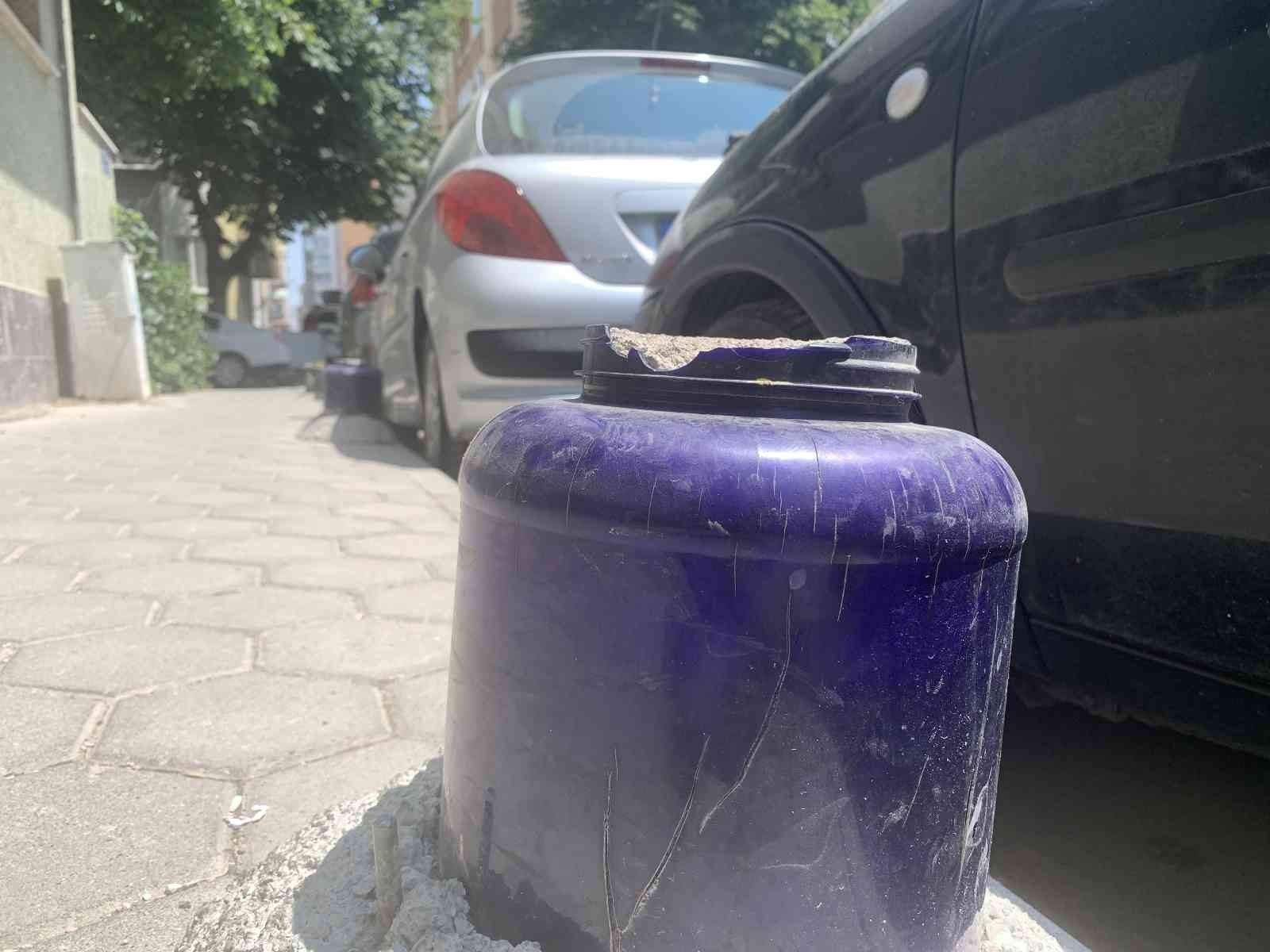 Eskişehir Deliklitaş mahallesinde kaldırıma park ederek zemin kattaki evlerin önüne kapatan araçlardan sıkılan vatandaşlar, çözümü kendi dubalarını yapmakta buldu.