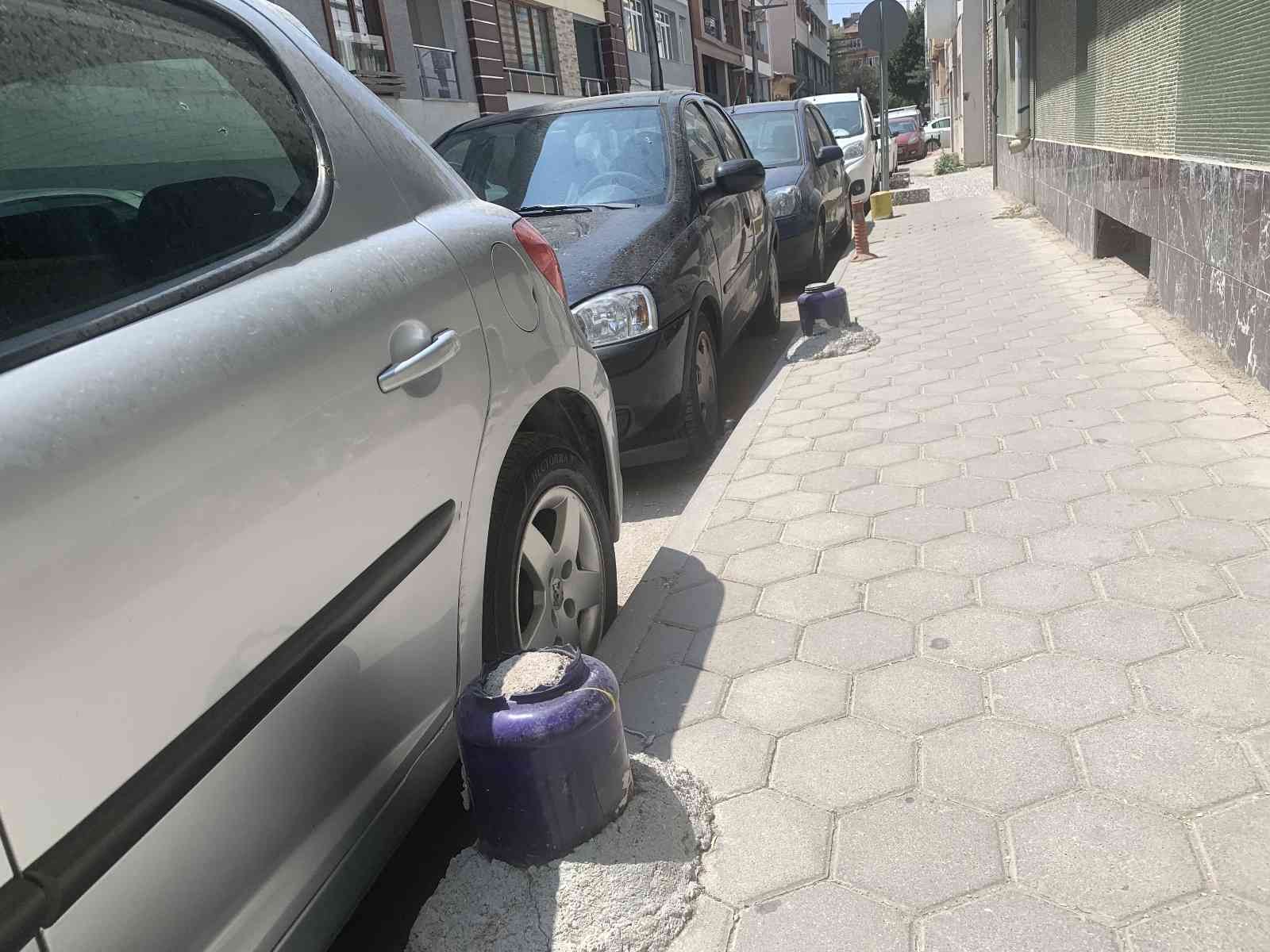 ESKİŞEHİR DELİKLİTAŞ MAHALLESİNDE KALDIRIMA PARK EDEREK ZEMİN KATTAKİ EVLERİN ÖNÜNE KAPATAN ARAÇLARDAN SIKILAN VATANDAŞLAR, ÇÖZÜMÜ KENDİ DUBALARINI YAPMAKTA BULDU.