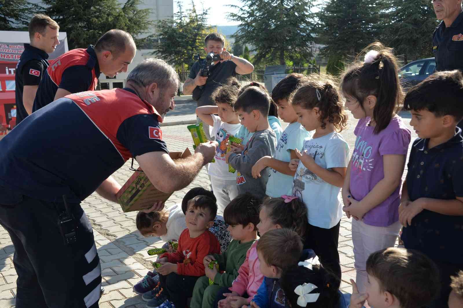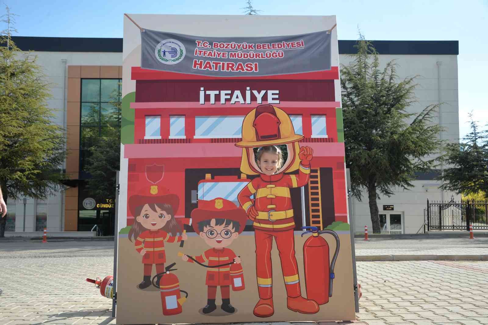 İtfaiyecilik Haftası nedeniyle Bozüyük Belediyesi Gündüz Çocuk Oyun ve Bakımevi’nin önünde yapılan etkinlikte sabahçı ve öğlenci öğrenci gruplarına uygulamalı yangın eğitimi verildi. İtfaiye personeli tarafından minik öğrencilere yangın ve yangından korunma konusunda gerekli bilgiler aktarılırken, itfaiye aracı ve kullanımı konuları anlatıldı. İtfaiyeci elbiseleri giyen minik öğrenciler, yangın hortumunu kullanarak pratik yaptı. Ayrıca itfaiye personelinin İtfaiyecilik Haftası’nı da kutlayan minik öğrencilere; yangından uzak durmaları, ateş ve çakmakla oyun oynamamaları konusunda uyarılarda bulunuldu. Etkinlik, kek ve meyve suyu ikramının ardından son buldu.