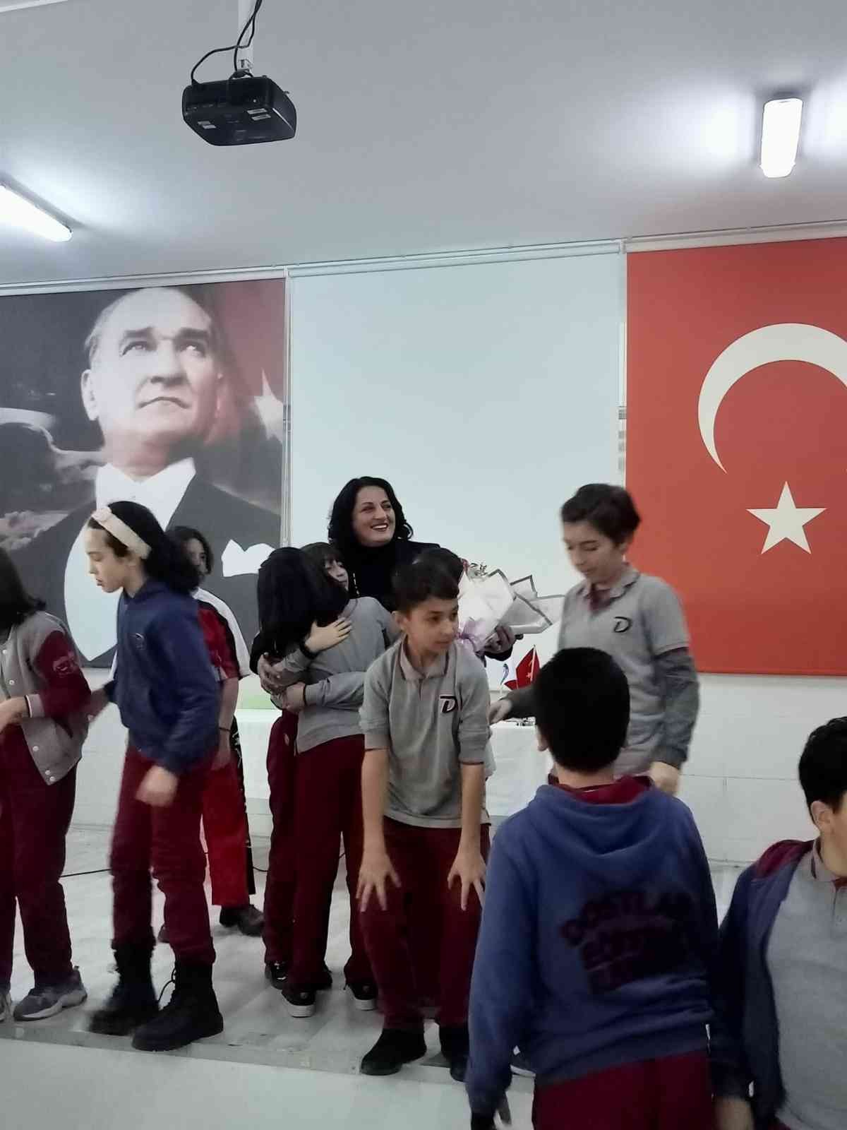 Söyleşi sonrası muhtar İnci Nur Duman’a çiçek takdim edilirken, öğrencilerle toplu olarak hatıra fotoğrafı da çektirildi.