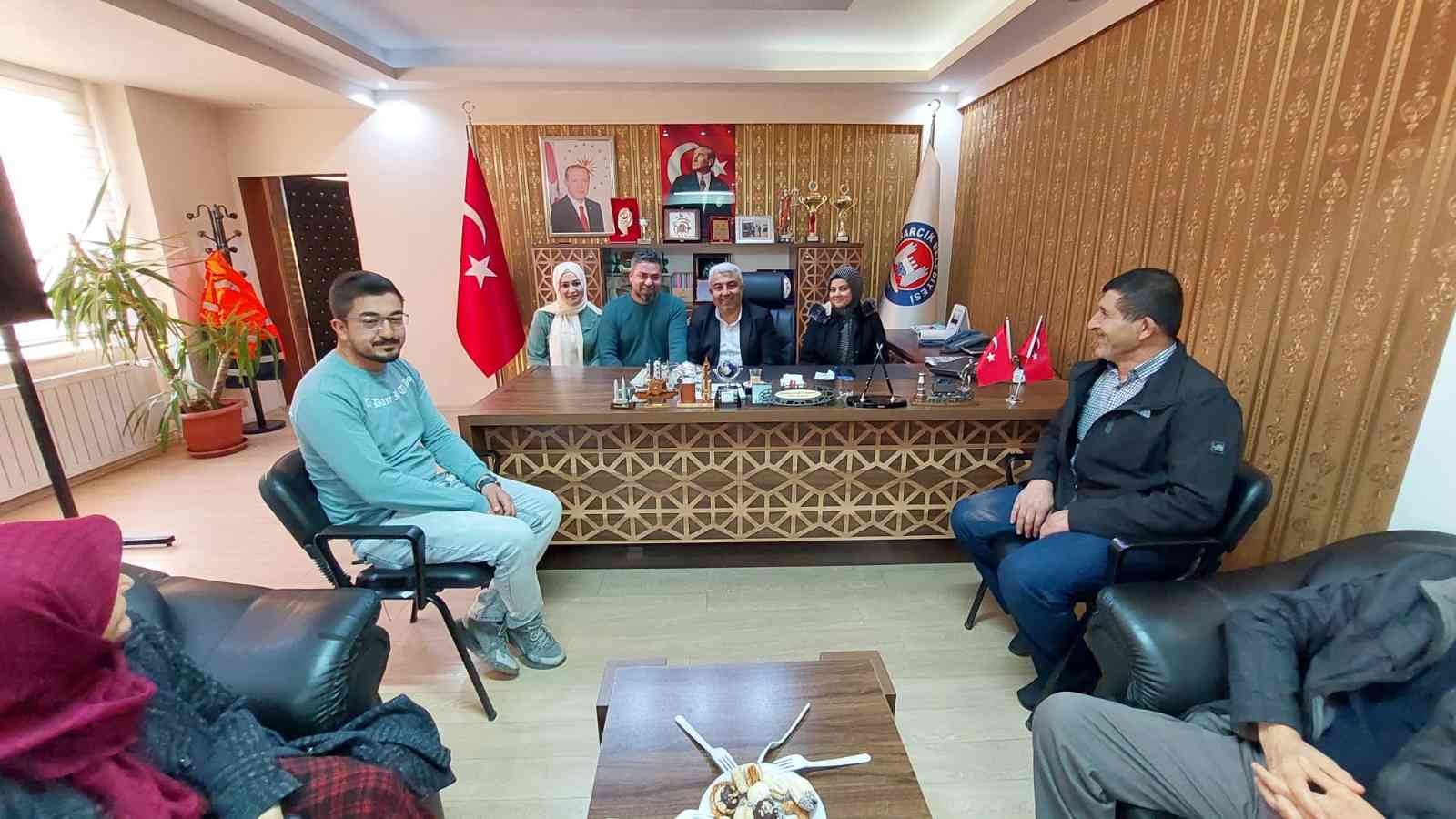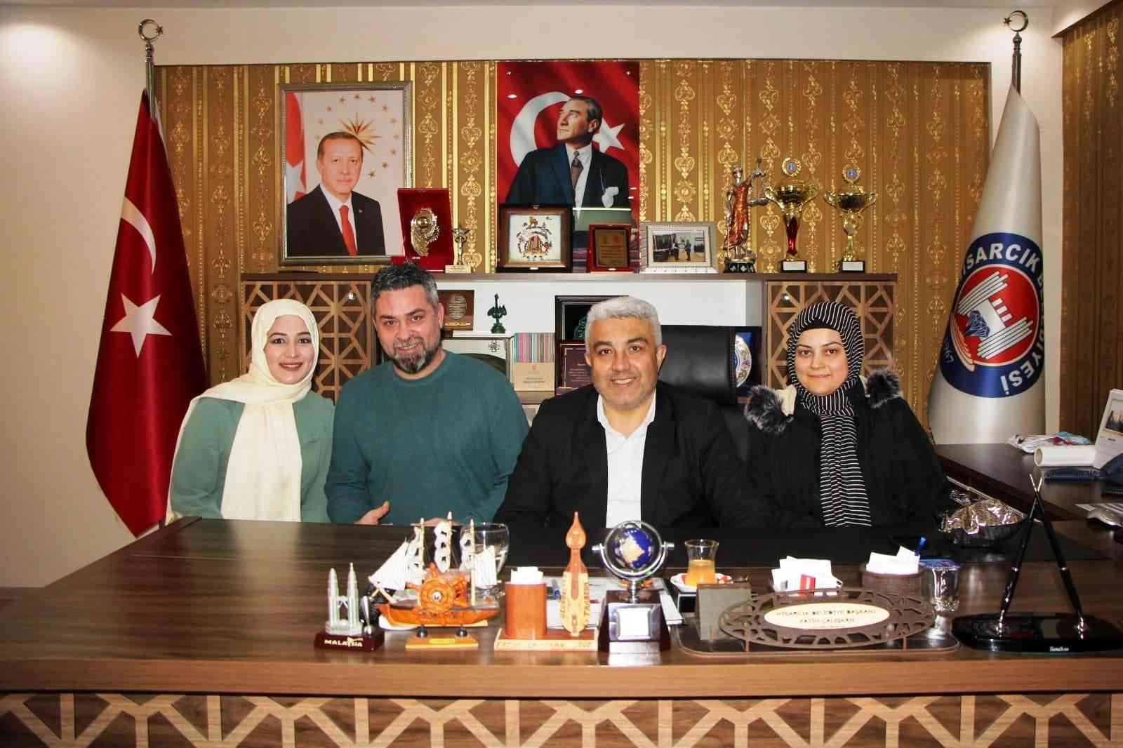 Hisarcık Belediye Başkanı Fatih Çalışkan, makamında düzenlenen nişan merasiminde partili çiftlerin yüzüklerini takarak, mutluluklarına ortak oldu.