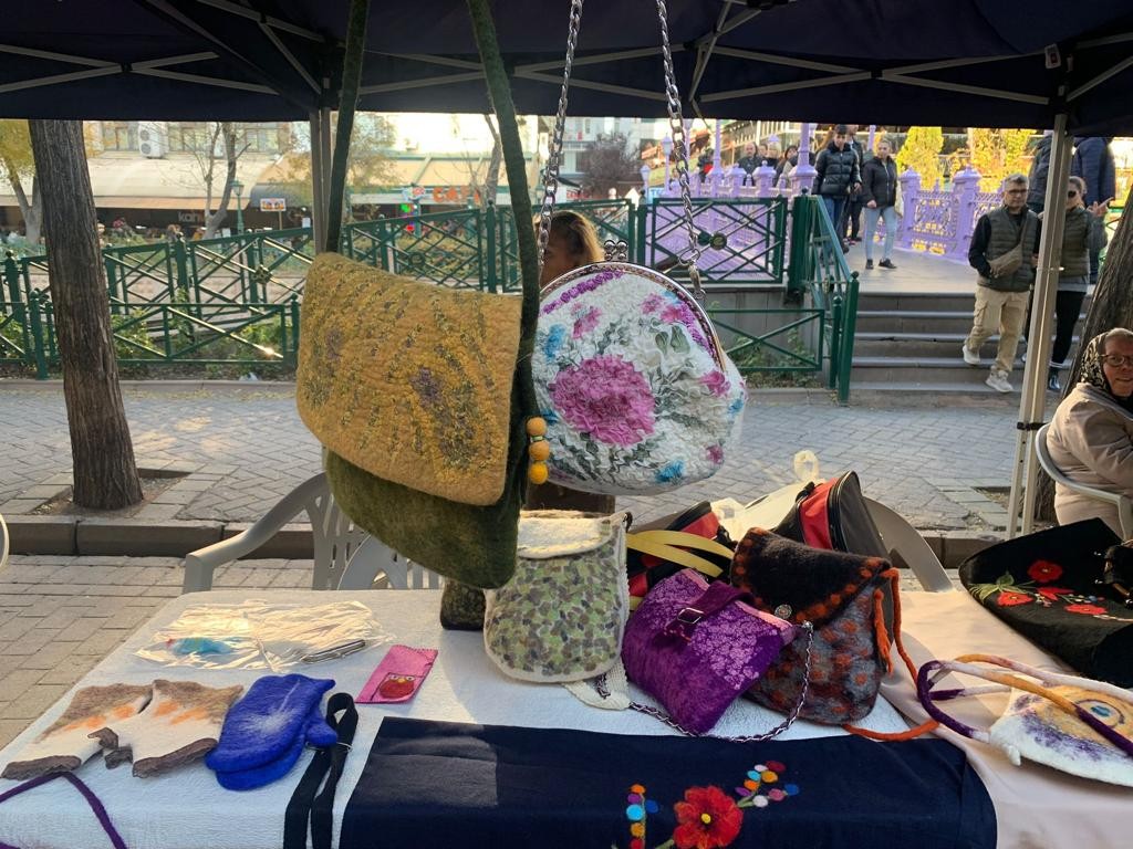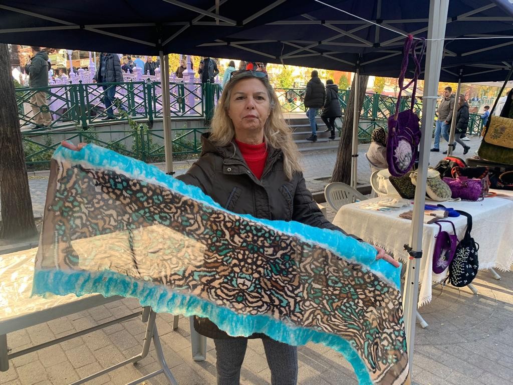 Uzun zamandır sulu keçe sanatıyla uğraştığını belirten Reyhan Gülerler, hobisinin yanında kendi ayakları üzerinde durabilmek ve aile ekonomisine katkı sunabilmek adına bu sanata yöneldiğini söyledi. Evinin bir bölümünü atölyeye çevirdiğinin altını çizen Gülerler, “Ben değişik el işleriyle uğraşmayı seviyorum. Bir de sulu keçeyle uğraşmaya başlayayım dedim. 3 senedir sulu keçe eğitimlerine gidiyorum. Geleneksel ıslak keçe yöntemini kullanıyoruz. Henüz kursa başlamadığım dönemlerde Eskişehir’de böyle bir kurs yoktu. İnternetten bakarak öğrenmeye başladım. Ardından evde kendi denemelerimi uygulamaya başladım. Evimde de atölyem var. Evimin bir bölümüne atölye kurdum. Evde de çalışıyorum ve zevk alıyorum. Ham keçeyi işleyerek yapıyoruz. Bu iş için ayrı bir oda veya atölye ihtiyacı oluyor. Suyla ve sabunla çalışıyoruz, keçeyi kumaş haline getiriyoruz. Yapım süresi değişkenlik gösterebiliyor. Yapılacak ürüne bağlı olarak üretim süresi değişiyor. Ceket ve şal gibi büyük ürünlerde en az 1 hafta gerekiyor. Onlar ciddi zaman ve emek istiyor. Aynı zamanda çeşide göre de fiyat değişiyor. 200 TL ile 700 TL arasında fiyatlarımız değişiyor. Sonuçta ciddi el emeği isteyen bir iş yapıyoruz” dedi.