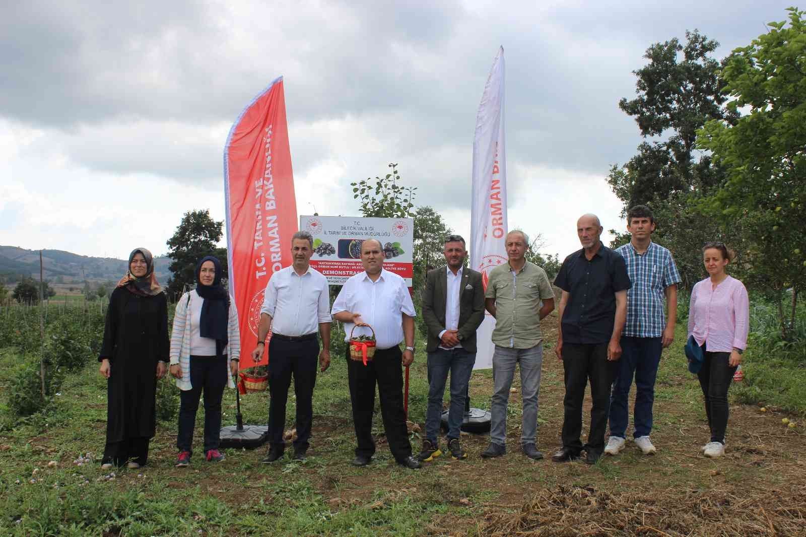 Konuşmanın ardından Osmaneli Kaymakamı Yüksel Ünal ve İl Tarım ve Orman Müdürü Necmettin Yoldaş, aronya bitkisinin ilk hasadını yaptılar.