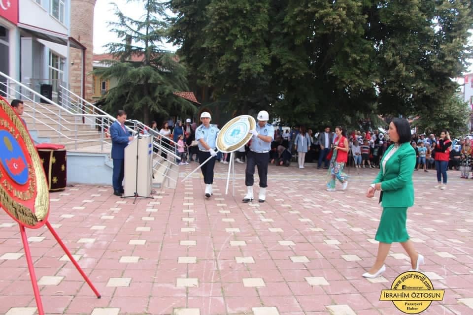 Pazaryeri Kaymakamlığı ile Pazaryeri Belediyesi’nin birlikte düzenlediği çelenk töreni, il protokolünün yanı sıra sivil toplum kuruluşu ve dernek temsilcileri ile çok sayıda vatandaşın katılımıyla gerçekleştirildi. Esnaflar Odası Başkanı İbrahim Karakaş’ın önderliğinde Pazaryeri esnafının konvoyu ile başlayan programda geleneksel kurtuluş mizanseni Avcılar atıcılar derneğinin destekleri ile yapıldıktan sonra Yenişehir Belediyesi Halk oyunları ekibinin gösterileri, ardından Bozüyük Osmanlı Mehteranın gösterisi ardından yemek ikramıyla tamamlandı.