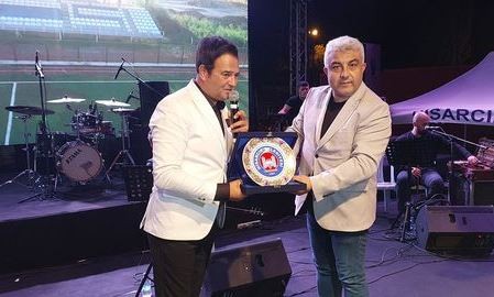 Konserde Belediye Başkanı Fatih Çalışkan Ali Çakar’a, gecenin anısına belediye logosu bulunan çini tabak hediye etti.