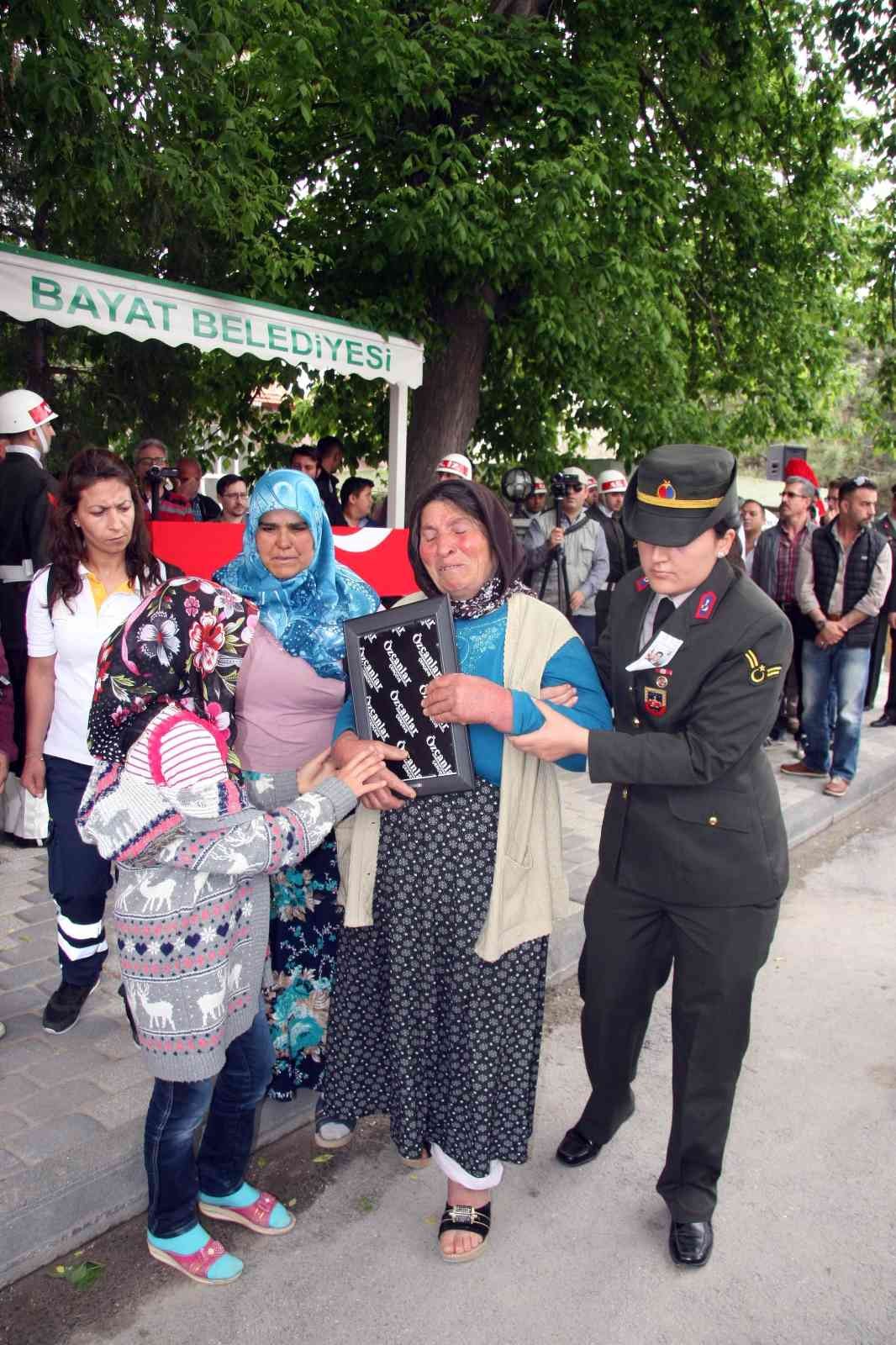 Şehit annesi Havva Arı’nın cenazesi bugün öğlen namazına müteakip Bayat ilçesi Çarşı Camiinde kılınan cenaze namazının ardından oğlunun mezarının yanında toprağa verilecek.