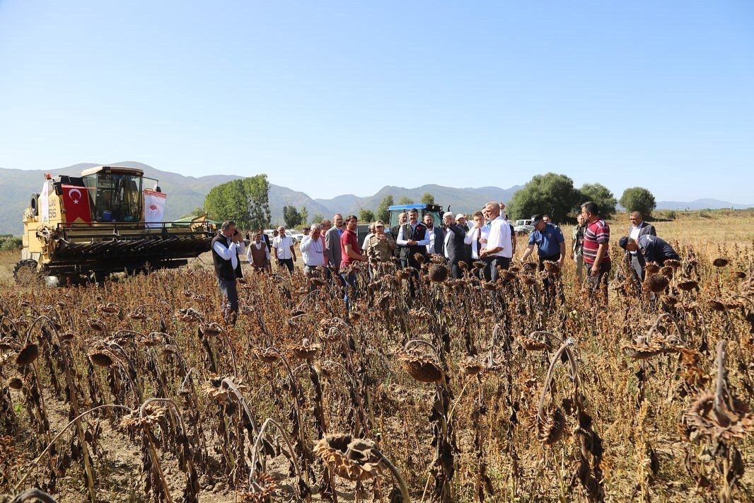 Vali Ali Çelik, Simav Demirci’de tarlada biçerdöverin direksiyonuna geçerek, çiftçilerle beraber ayçiçeği hasadı yaptı.