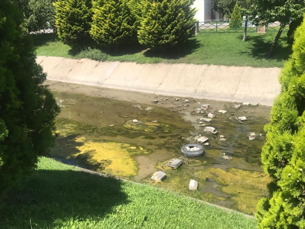 Eskişehir’in Sümer Mahallesi’nden geçen sulama kanalında, suyun çekilmesinin arından ortaya çıkan atıklar dikkat çekti.