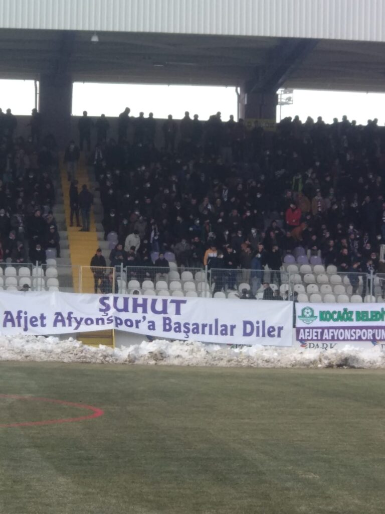 Şuhut Kaymakamlığı tarafından organizasyon edilen ve lise öğrencilerinden oluşan grup Afyonspor-Çorum FK futbol maçında Afyonspor’a destek vermek için tribündeki yerini aldı. Şuhut Kaymakamlığı tarafından yapılan “Şuhut Afjet Afyonspor’a Başarılar Diler“ pankartı açan öğrenciler tezahüratlarla mor beyazlı takımımız Afyonspor’a destek verdi.