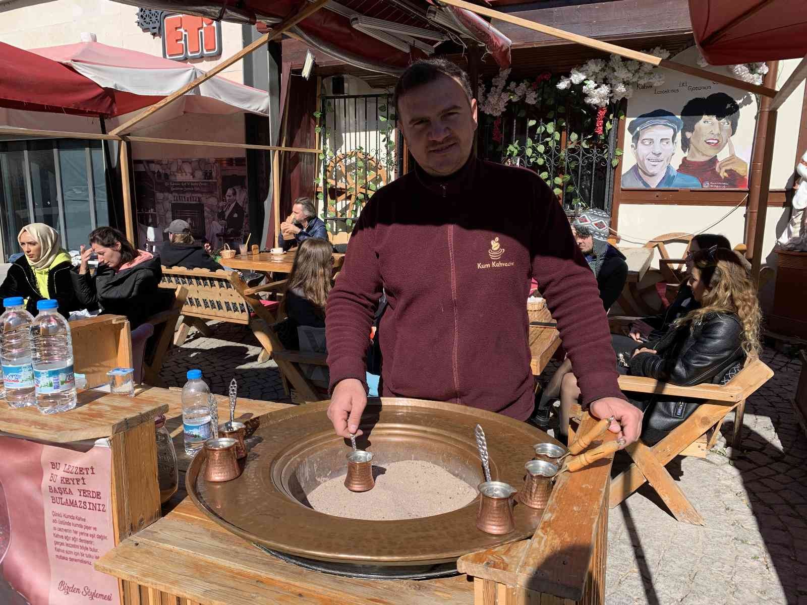 Eskişehir’in en gözde lezzetlerinden olan kızgın kumda kahve, havaların soğuması ile birlikte vatandaşların ve turistlerin daha çok ilgi odağı oldu.