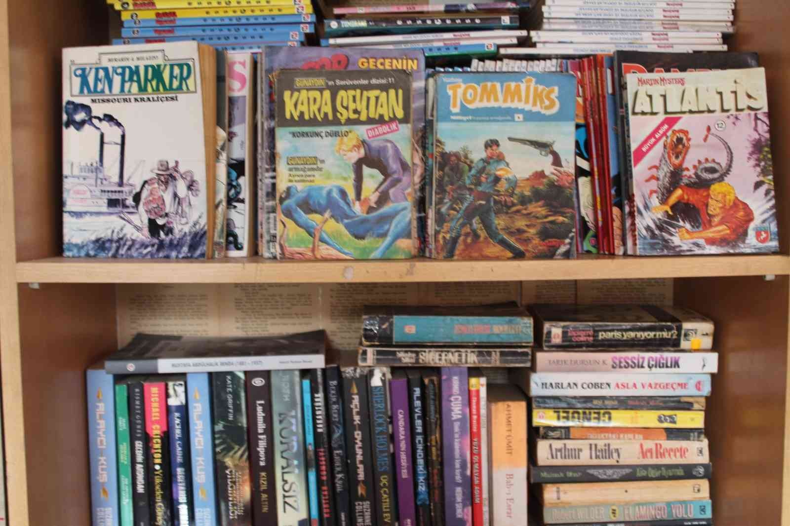 Gelen meraklıların kitapları görünce geçmişinden izleri de bulduğunu söyleyen Mutlu Din, “Dükkana gelen müşterilerim arasında eski kitapların arasından aşk mektupları, takvim yaprakları insanların kendi arasındaki edebiyatını görebiliyorum. İlk başlarda dünya klasikleri denilen basıldığı yıldan itibaren en iyi çevirmenlerinin çevirdiği ürünleri topladım; Sonra Türkiye’nin 1940,1 950 ve 1960’lı yıllarda ünlü yazar ve çevirmenlerin eserlerini topladım, Osmanlıca eserlerim ve orijinal hat sanatlarından oluşan 100,150,250 yıllık tarihi eserlerimiz bulunuyor. Kültürümüzde 1960 kuşağının aradığı Teksas, Zagor gibi çizgi romanlar mevcut. Buraya gelenler sohbet için, araştırma için geliyor. Sadece kitap alanında değil müzikler, eski film posterlerini de bulmak mümkün. En eski olarak ise Hz. Ali’nin Sad adlı 100 sözü olarak bilinen 250 yıllık taş matbaa döneminde basılmış Osmanlıca metin var. 125 yıllık ise Osmanlıca öğreniyorum seti var. Bunların yanı sıra Cumhuriyet’in ilk döneminden çok sayıda ilk baskı orijinal kitaplar ve ürünlerin yanı sıra pul koleksiyonu da mevcut” ifadelerini kullandı.