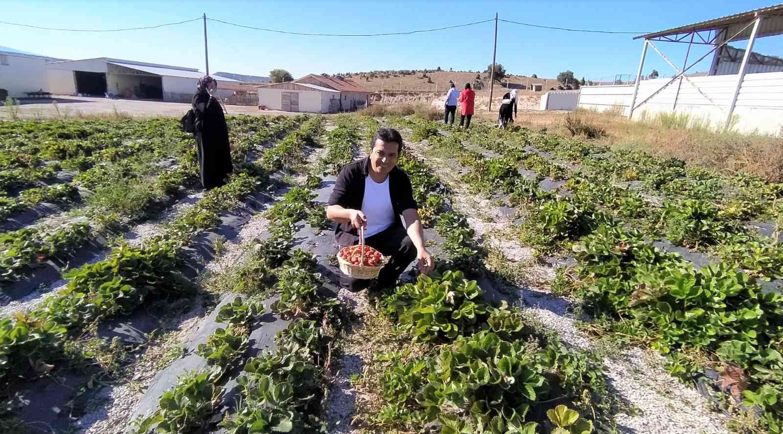 Kaan-Sevda Bülbül çifti, Çayca köyü yakını Frig Vadisi Yolu üzerinde faaliyete geçirilen ve ’Saniye Sultan’ ismi verilen ’Çilek parkı’nın Kütahya’da bir ilk olduğunu ifade ettiler.