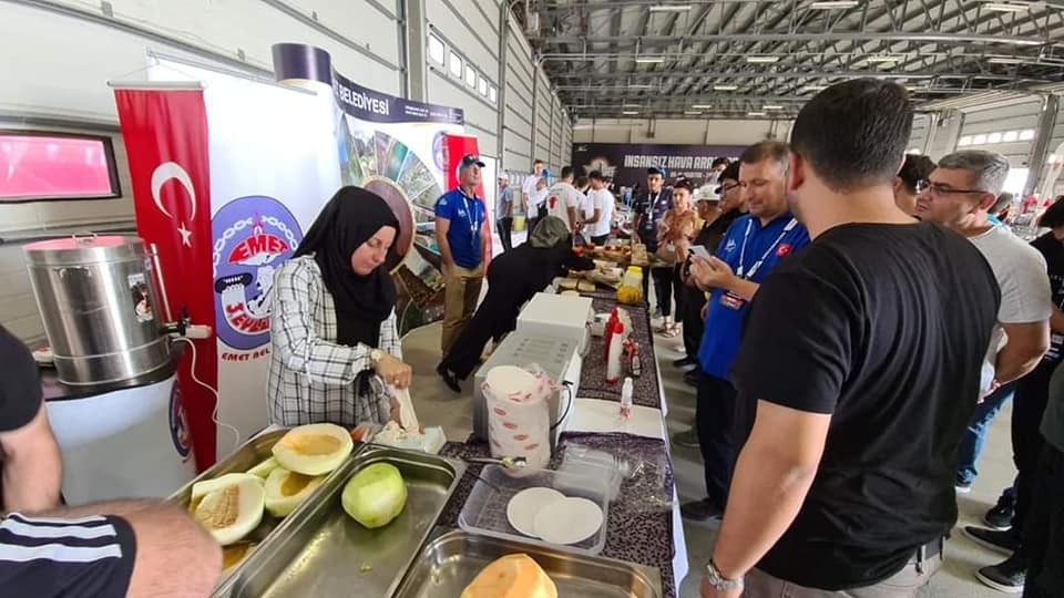 Büyük Zafer’in 100. yılında Kütahya’da gerçekleşen Uluslararası Serbest Görev İnsansız Hava Araçları (İHA) yarışmasında Emet Belediyesince açılan stantta katılımcılara ilçe tanıtımı yapılıp, yöresel lezzetler tanıtılıyor.