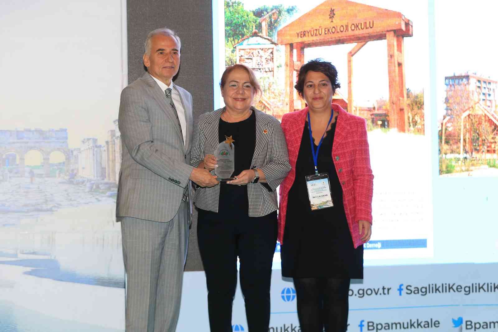 Dış İlişkiler Müdür İnci Çalışkan ve Tepebaşı Belediye Meclis Üyesi Nazan Erşahin, ödüllerini Denizli Belediye Başkanı Osman Zolan’ın elinden aldı.