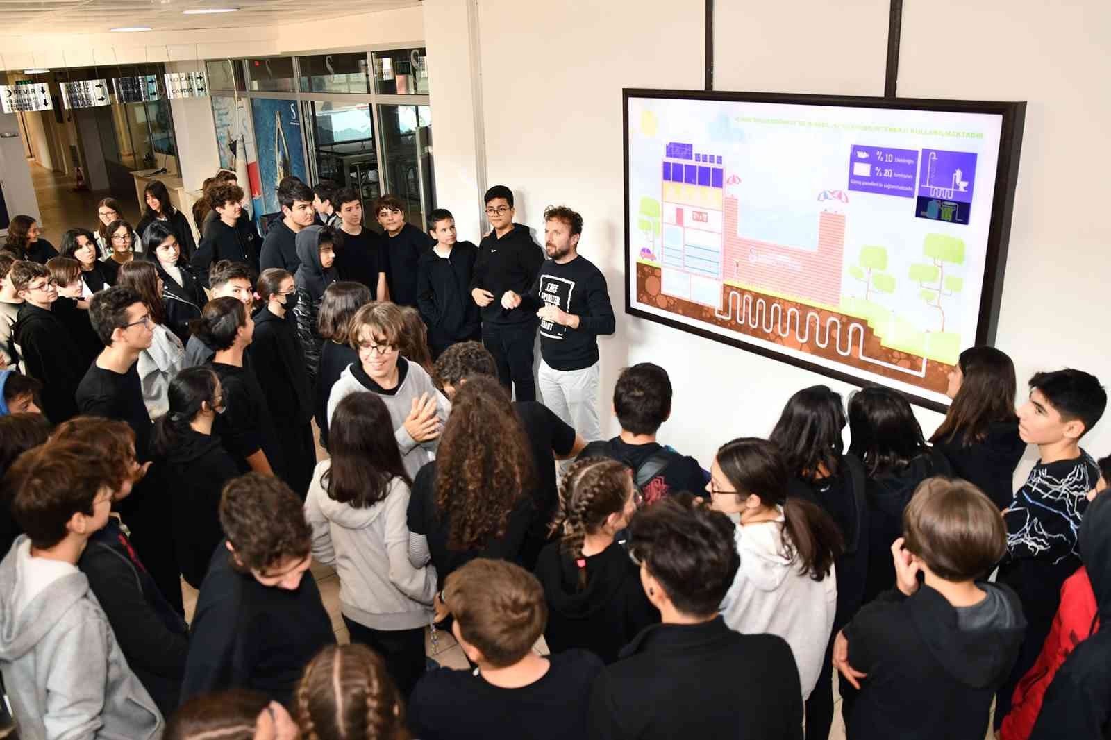 Ardından öğrenciler, çevre dostu ve enerji etkinliği alanında öncü bina uygulamalarına uluslararası alanda verilen LEED sertifikasını Türkiye’de altın puan değerlendirmesi ile alan ilk kamu binası olan Mustafa Kemal Atatürk Spor Tesisleri Su Sporları Merkezi’ni yerinde gördü. Öğrencilere İklim Değişikliği ve Sıfır Atık Müdürlüğü yetkilileri tarafından enerji etkin binalar ve yenilenebilir enerji kaynaklarının verimli kullanımı hakkında bilgi verildi. Ayrıca öğrenciler, gezi anında çevre dostu olan elektrikli otobüsleri de deneyimleme fırsatı buldu.