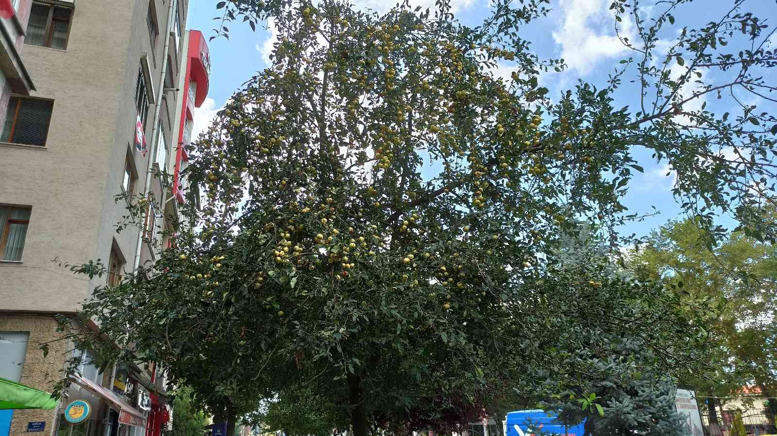 Eskişehir şehir merkezindeki bir elma ağacında olgunlaşan, ancak toplanmayan elmaların büyük bir bölümü dalında çürüdü.