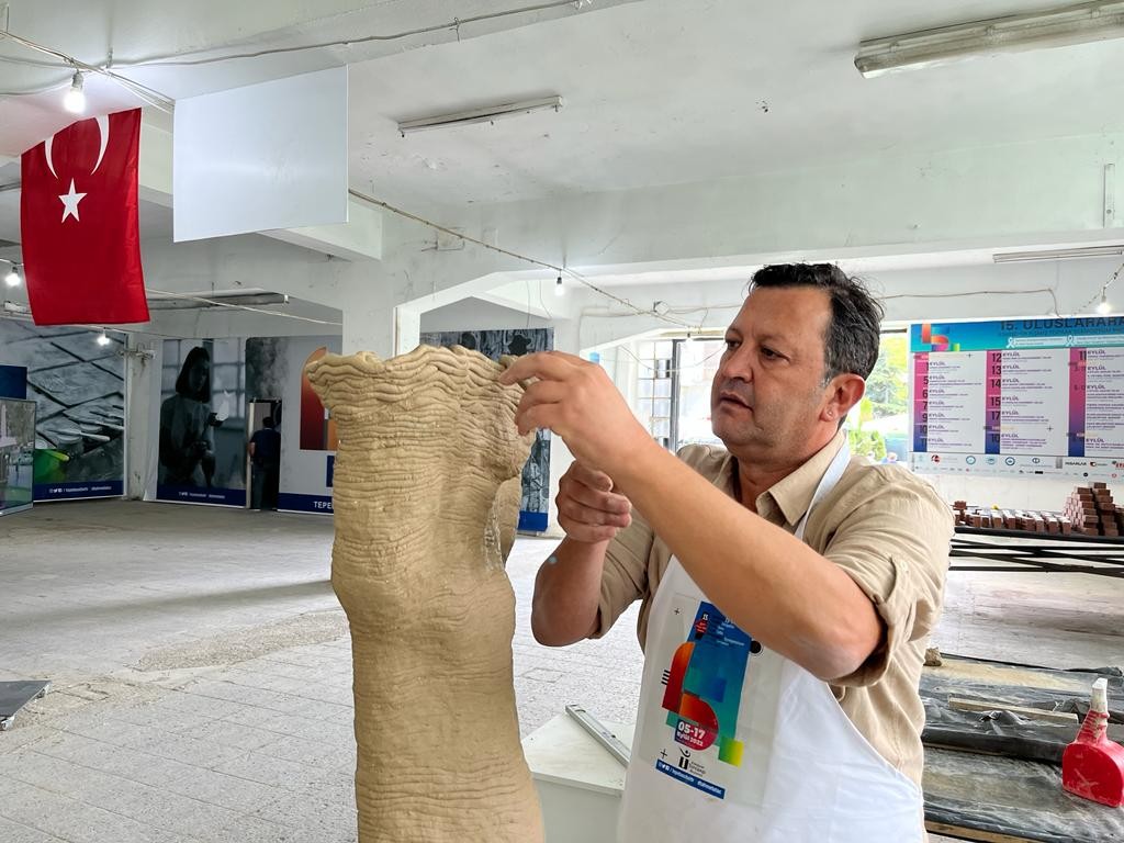 Daha önce 11’ncisi düzenlenen 2017 yılındaki sempozyuma geldiğini söyleyen Hacette Üniversitesi Seramik Bölümü Öğretim Üyesi Prof. Dr. Kaan Canduran, “Geçmişte de kamuya yönelik caddelerde ve parklarda sergilenebilen eserler koymuştuk. Hali hazırda 2 çalışmam sergilenmektedir. Bu seneki sempozyuma 8 sanatçı katıldı. İtalya başta olmak üzere Romanya, Küba ve Kore’den yabancı sanatçılar geldi. Birçok sempozyuma katıldım ve eserler ürettim. Bu etkinlik, sanatçıya değer ve destek veriyor. Şu an ise insan şekillendirmesi üzerine bir çalışma yapıyorum. Dikkat ederseniz üzerinde katmanlar yer alıyor. Bu katmanlar, insan hayatının ömrü boyunca yaşadığı iyi ve kötü duyguları olarak hissettirmeye çalışıyoruz” diye konuştu.