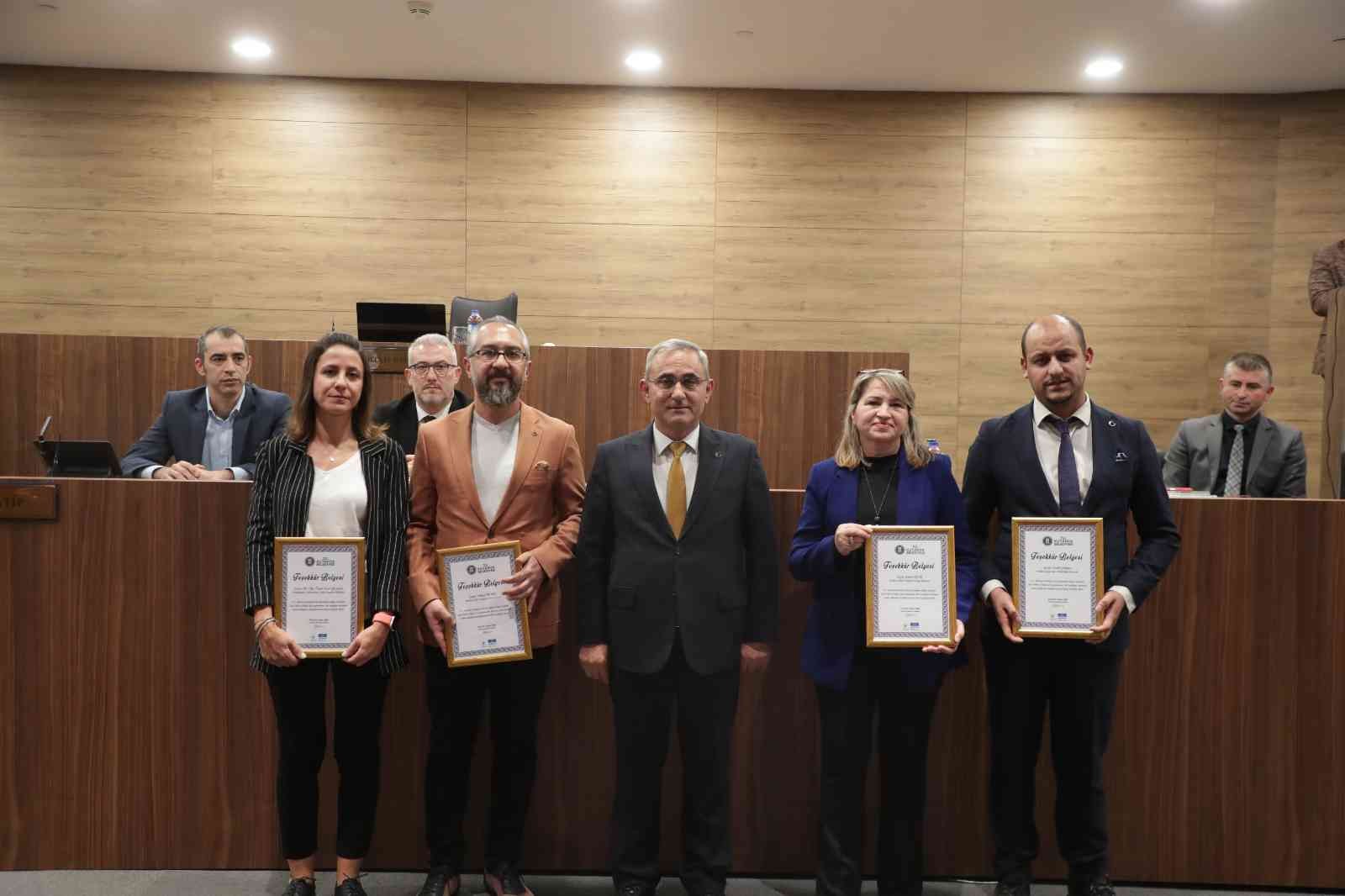 Belediye Meclis Salonu’nda gerçekleştirilen toplantıda gündem maddeleri görüşülmeden önce, Büyük Zaferin 100. yılı etkinlikleri çerçevesinde; “Cumhuriyet ”ana temalı gerçekleştirilen dijital afiş, fotoğraf, kısa film yarışmalarında jüri üyelerinin değerlendirilmesiyle dereceye girenlere ödüller ve teşekkür belgesi verildi.