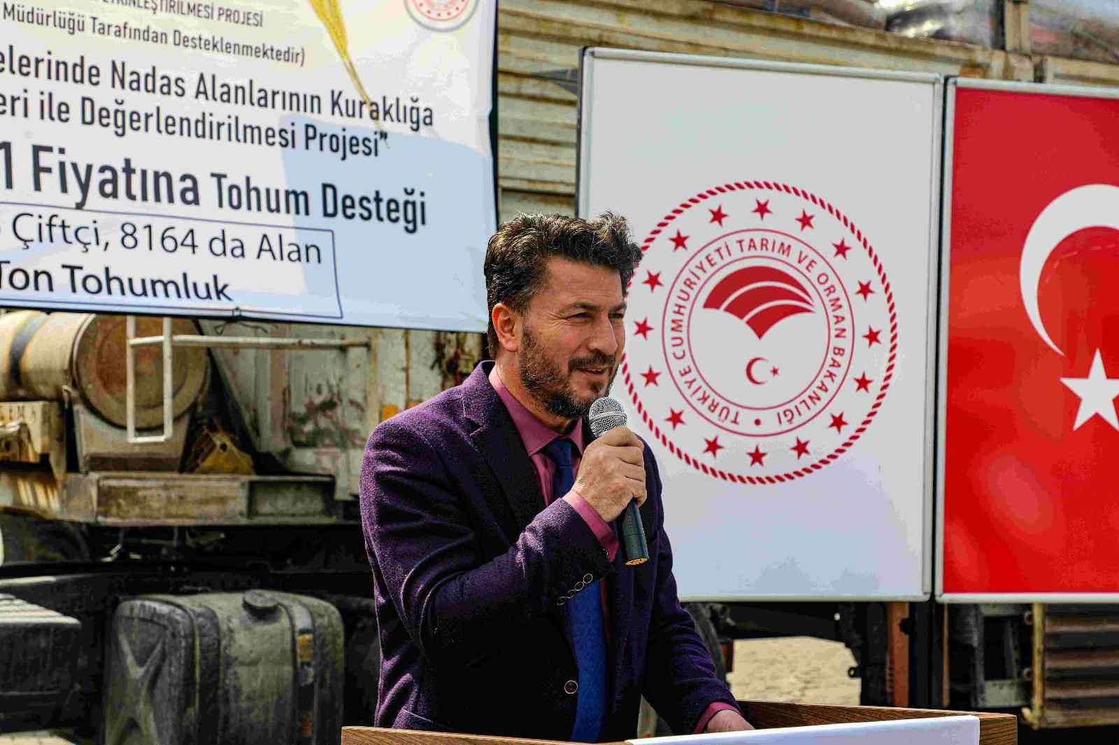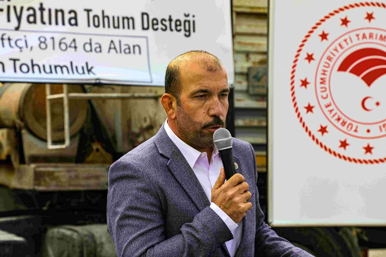 Seyitgazi Ziraat Odası Başkanı Erhan Erden de etkinlikte yaptığı konuşmada, “Sizlerin temsilcileri olarak Seyitgazi Tarım İlçe Müdürlüğü ile beraber güzel bir sinerji yakaladık ve devletimizin uygulamış olduğu projelerden ilçemize hangisinden ne kadar getirebiliriz gayreti içerisinde olduk. Bu anlamda bize her zaman destek olan Tarım İl Müdürümüze çok teşekkür ediyorum. Ne zaman gitsek, ne zaman arasak kapısı sonuna kadar açık oldu. Seyitgazi bu anlamda Eskişehir’de en çok desteği alan ilçelerden birisi oldu. Bu sene 2022 yılı içerisinde Tarım İl Müdürlüğümüzle yapmış olduğumuz projelerde iyi tarım uygulamaları çerçevesinde çörekotu ile ilgili çalışmalarda bulunduk. Bunun da büyük bir kısmını Tarım İl Müdürlüğümüz hibe olarak çitçilerimize sağladı. Bugün de yüzde 75’i hibeli arpa tohumu projesi ile Seyitgazili üreticilerimizle beraberiz. Çiftçimize yeni bir müjde daha vermek istiyorum. Yine Tarım İl Müdürlüğümüzün vermiş olduğu destek ve Tarım İlçe Müdürlüğümüzle birlikte yapmış olduğumuz proje dahilinde BEBKA (Bursa Eskişehir Bilecik Kalkınma Ajansı)dan İlçemize tohum eleme ve paketleme tesisi projemizde onaylandı. İnşallah en kısa zaman içerisinde iyi bir yatırım ve büyük bir kısmı hibe olan bu projeyi de Tarım İl Müdürlüğümüzün desteği ile İlçemize kazandırmış olacağız. Tüm bu destekler için kurumumuza çek teşekkür ediyor, çiftçimize dağıtılan arpa tohumlarının bereketli olmasını diliyorum” dedi.