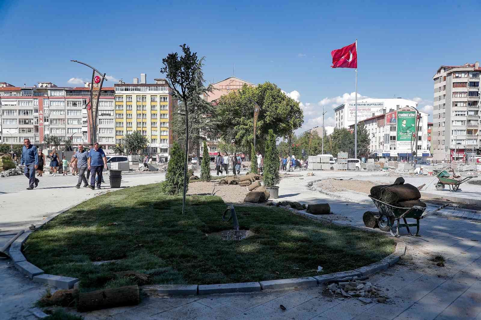 Yürüyüş yollarında kullanılacak olan mozaiklerin de döşeme çalışmalarının başladığı Zafer Meydanı çevresi ile birlikte Kütahya’nın yeni yüzü olmaya hazırlanıyor.